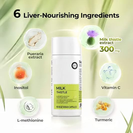 Milk Thistle Liver Detox & Colon Cleanse, Natural Liver Health Support with Kudzu Root, Turmeric, Inositol, Methionine,Vitamin C,90 Capsules silymarin